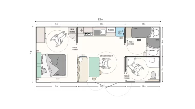 Ce mobil-home est idéal pour accueillir des personnes à mobilité réduite, avec des espaces facilement accessibles en fauteuil roulant.