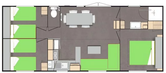 Ce mobil-home allie élégance et confort. Idéal pour des vacances avec toute la famille.